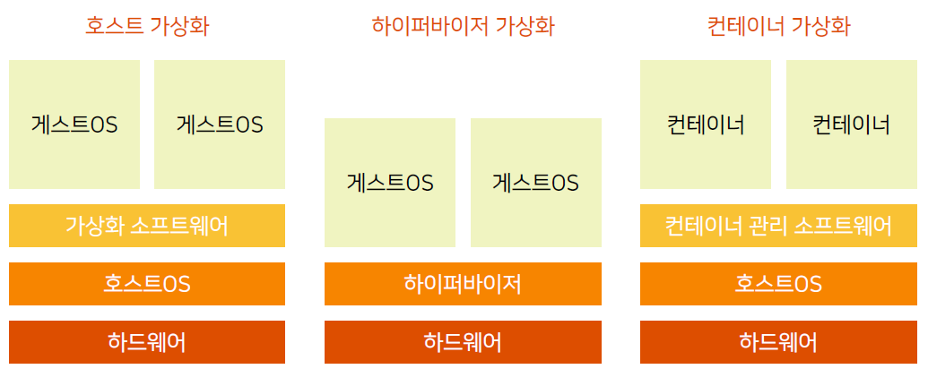 | 적용 예 | 가상 머신, 클라우드, 컨테이너 | 대규모 웹서비스, 클라우드 네이티브 애플리케이션 |